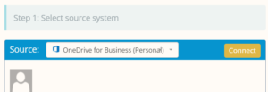 - Choose OneDrive as the ‘Source’ and authenticate using Microsoft credentials.